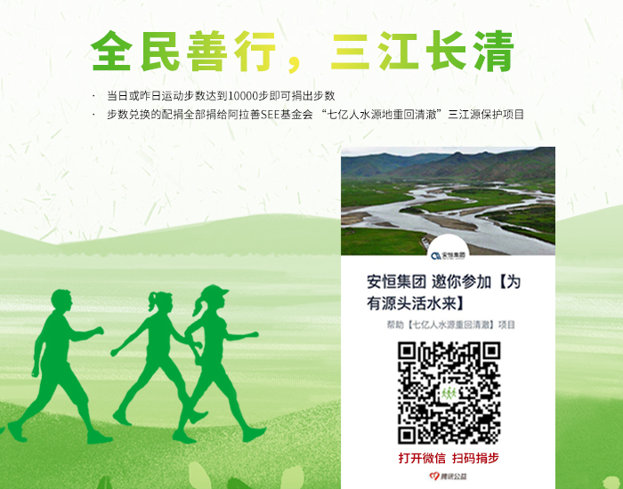 安恒集团自201811月发起“为有源头活水来”三江源保护公益捐步活动,至今已有近7万人参与,安恒为三江源保护配捐近10万元。全民善行,三江长清,期待您的加入,让我们走的每*步都具有生态环境价值。