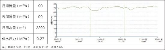 白庙子村日间水量由改造前的90m3/h降至现在60m3/h;夜间水量由改造前的80m3/h降至现在10m3/h,平均日节省水量余约1000m3,年节省水量约36万m3。同时,白庙子村减压前半年维修239处,减压后半年维修21处。