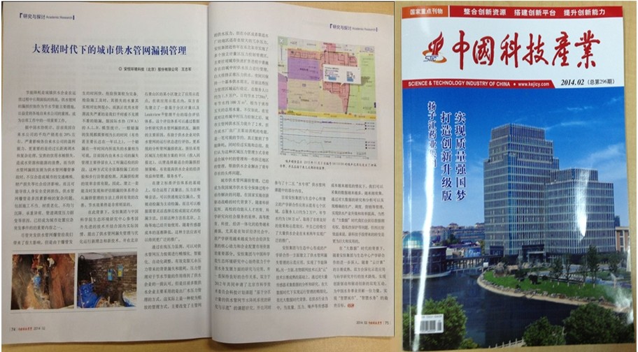 全国“两会”在万众瞩目下隆重召开,在两会代表驻地,由科技部主管的《中国科技产业》今年仍一如既往地携带先进的科技创新成果亮相“两会”,作为“两会”的“常客”——连续多年参加全国“两会”采访报道并赠送与会代表和委员。安恒集团的供水管网漏损控制解决方案凭借创新的理念和先进的技术被刊载在《中国科技产业》2014年第二期科技创新成果栏目内,以“大数据时代下的城市供水管网漏损管理”为题,与两会代表进行了新理念和新技术的分享。