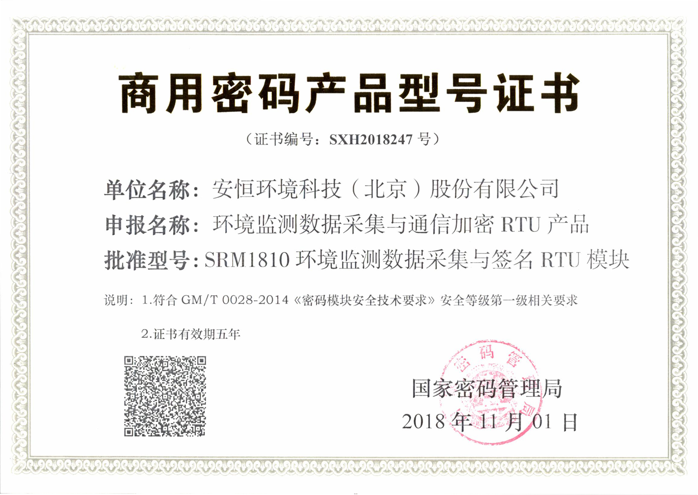 近日,安恒集团自主创新的环境监测数据采集与通信加密RTU产品获得国家密码管理局认证,这标志着我国环保行业商密产品实现重大突破!!!