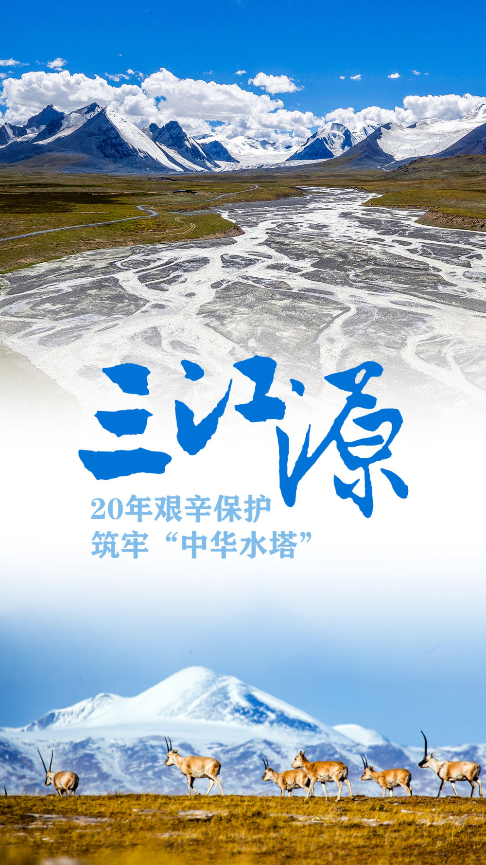 如今的三江源,人与自然和谐共生,“中华水塔”坚固丰沛,呈现出一幅山清水秀、万物争荣的壮美画卷。