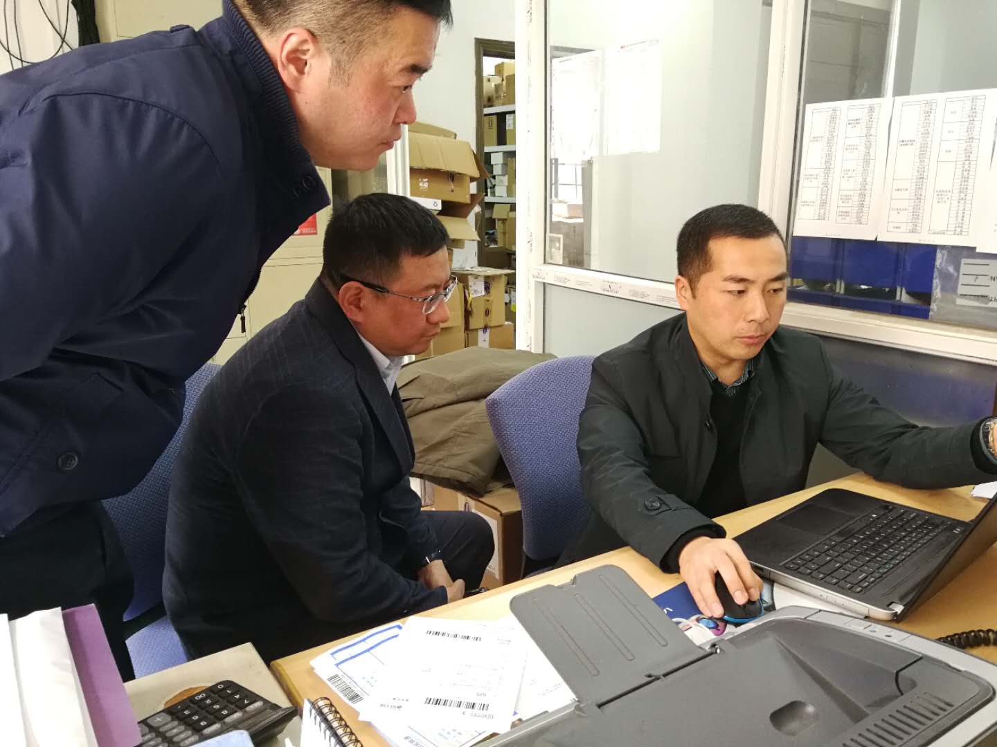 北京安恒测试技术有限公司副总经理冯涛为秦晓培一行介绍维修中心业务流程体系